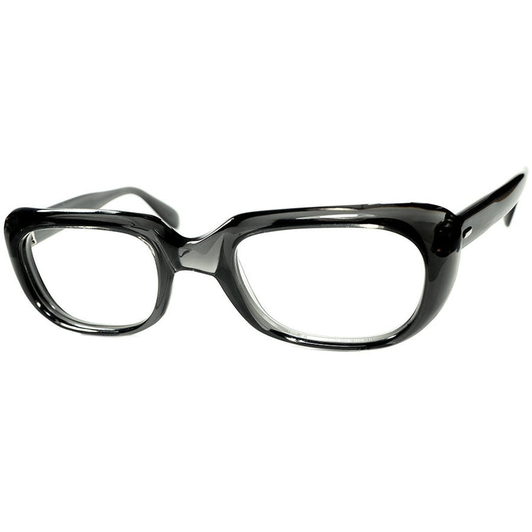 圧巻TOPクオリティxRARE生地 1960sフランス製 デッドストック FRAME FRANCE 球状面取り SQUARE系 肉厚ウェリントンBLACK CRYSTAL size50/24 ビンテージ ヴィンテージ 眼鏡 メガネ 【a7469】
