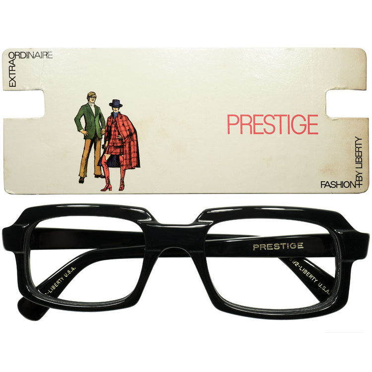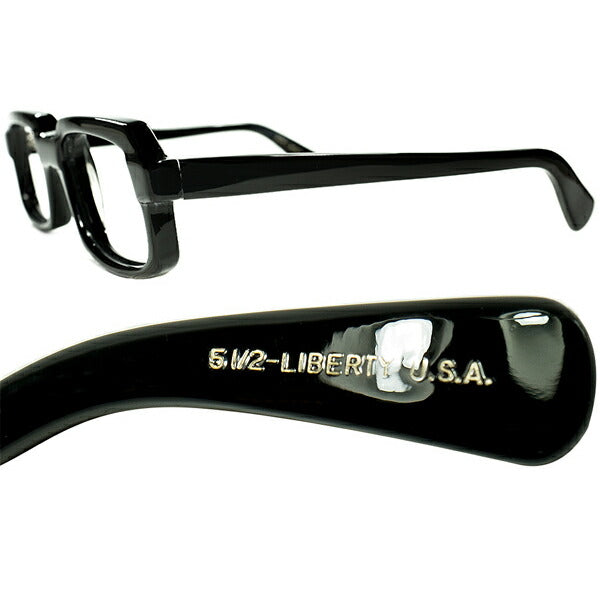 REALオールドUSハイエンド 1960s デッドストック USA製 LIBERTY プレステージ 最大7mm 極厚BLACK スクエア ウェリントン size50/21 ビンテージ ヴィンテージ 眼鏡 メガネ 【a7527】