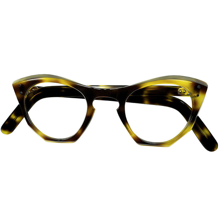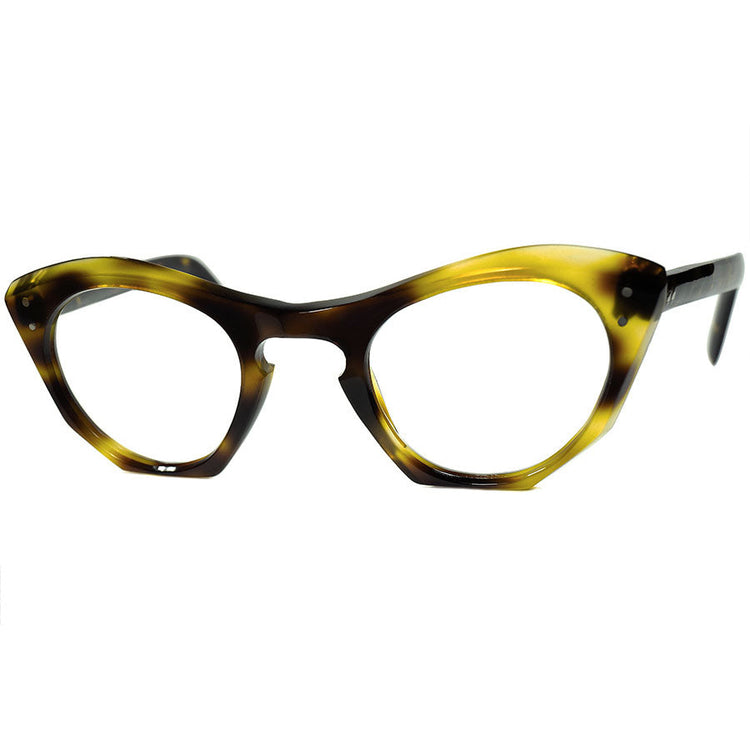 超絶カッティングx極上生地感 1950s オリジナル フランス製 デッドストック FRAME FRANCE イエロートータス FOX系KEYHOLE PANTO 実寸42/24 GOOD SIZE ビンテージ ヴィンテージ 眼鏡 メガネ 【a7542】