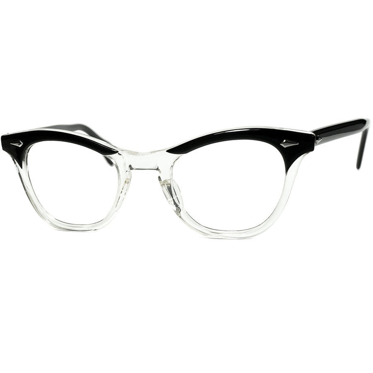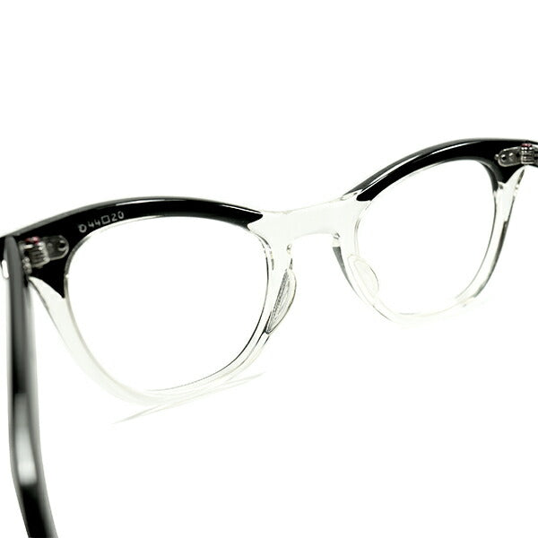 黄金期AO 優秀モデル1960s デッドストック USA製 アメリカンオプティカル AMERICAN OPTICAL キーホール FOX型ウェリントン黒2TONE size44/20 ビンテージ ヴィンテージ 眼鏡 メガネ 【a7863】