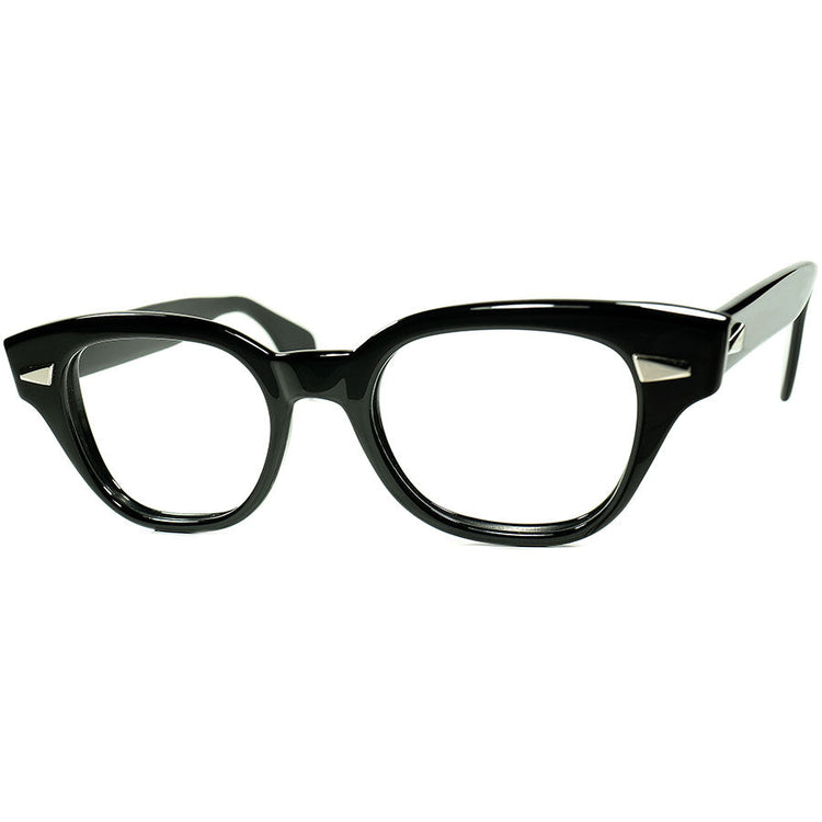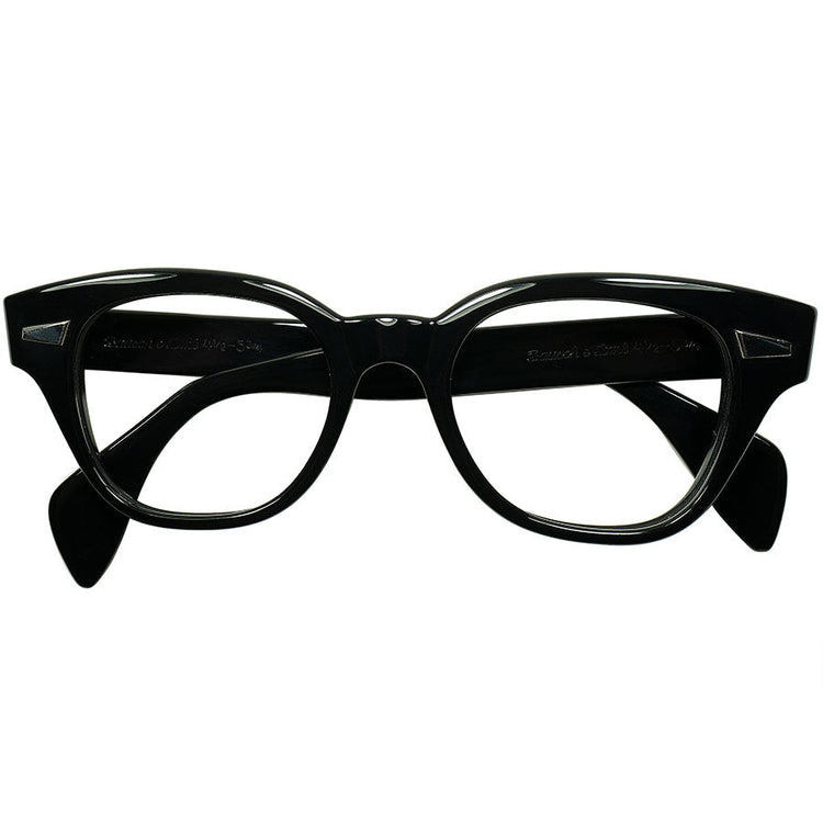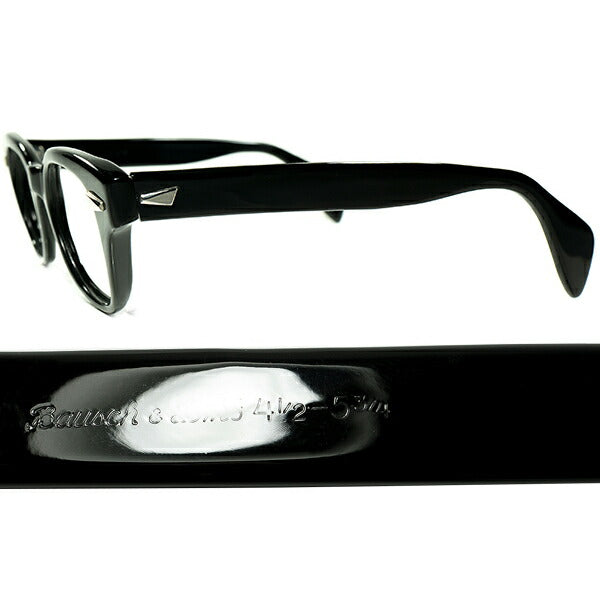 ハイクラスUS BLACKフレーム デッド級TOPランク個体1950s-60s USA製 BAUSCH&LOMB ボシュロム B&L 肉厚凹凸立体構造ウェリントン size48/21 ビンテージ ヴィンテージ 眼鏡 メガネ 【a7881】