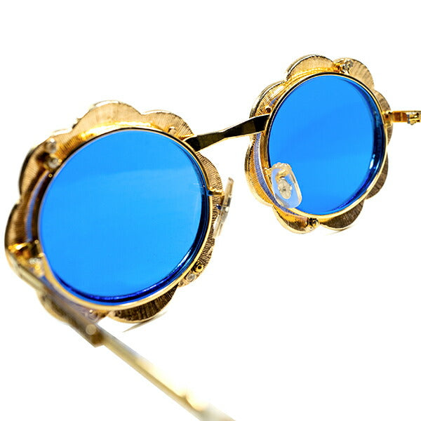 ゴールドメタルのフレームボディに、手作業によるホワイトのエナメルペイントが施され、そこにコバルトブルーのガラスレンズが鎮座する様がもはやARTとしての位置付けの方が近いのではないかというほど、