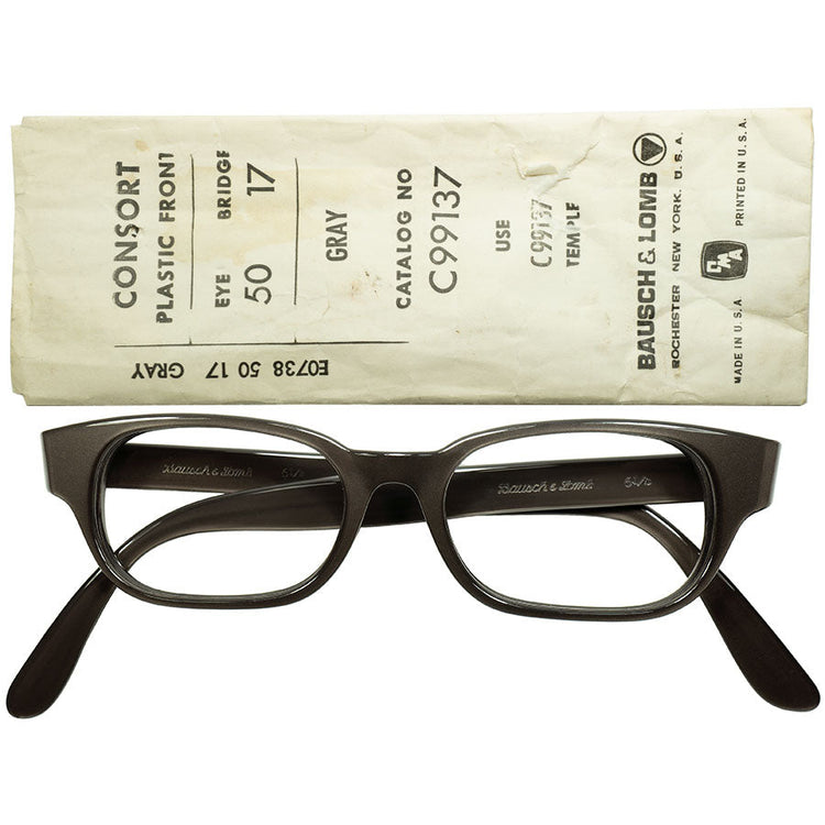 日本人向けFITS ALL 現代的サイズ設計1960s USA製デッドストック B&Lボシュロム BASICウェリントン型 CONSORT チャコールグレー size50/17 ビンテージ ヴィンテージ 眼鏡 メガネ 【a8047】