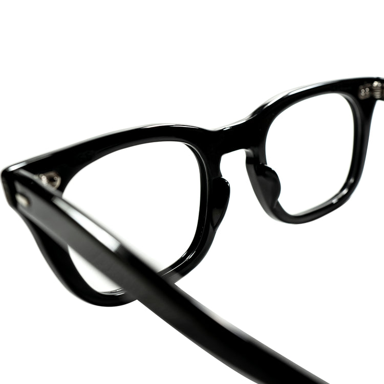 絶妙な縦幅とボリューム感、四角さと丸みの具合が完璧なホーンリムスタイルのウェリントンシェイプ、そしてこの時代のアイウェアデザインの真骨頂であるキーホールブリッジが採用されており、