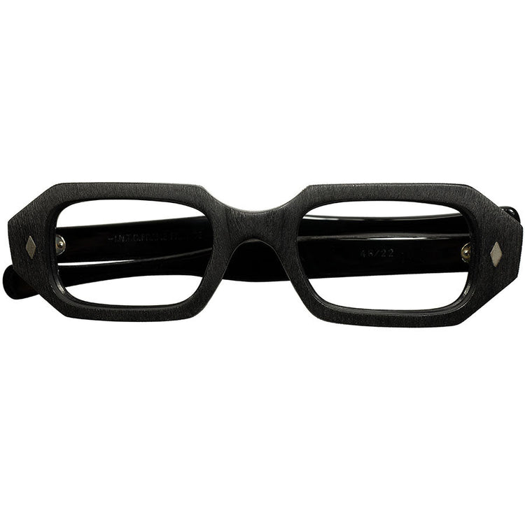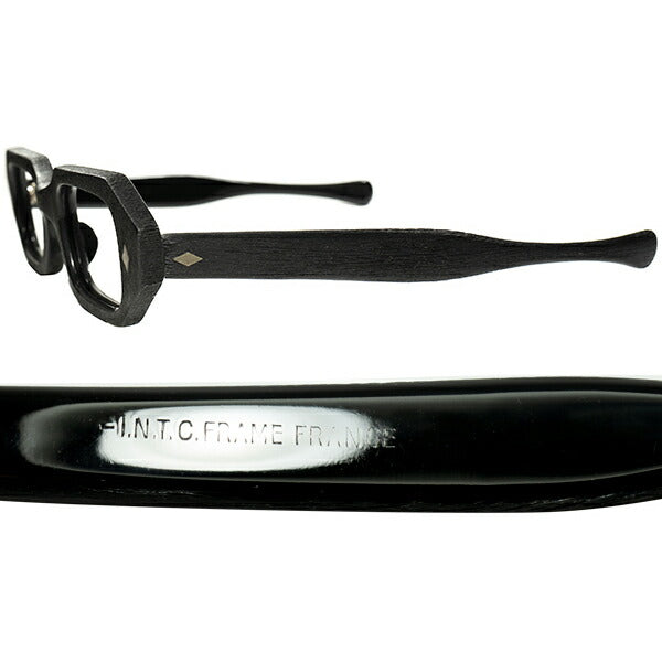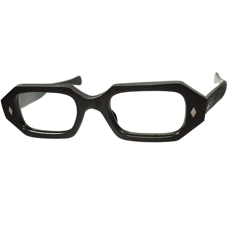 手作業によるWOOD LOOKなMATT BLACKが秀逸すぎる1960s フランス製 デッドストック FRAME FRANCE ダイヤ鋲 短縦幅七角形 HEPTAGON size46/22 BLACK ビンテージ ヴィンテージ 眼鏡 メガネ【a8217】