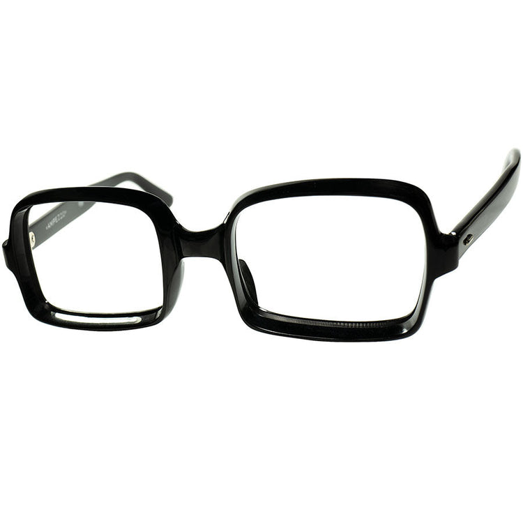 ド迫力の立体感とモノとしての面白さが溢れる1960s フランス製デッドストック FRAME FRANCE 極細リム幅x7mm極厚 RECTANGLE 長方形 BLACK52/22実寸 ビンテージ ヴィンテージ 眼鏡 メガネ 【a8331】