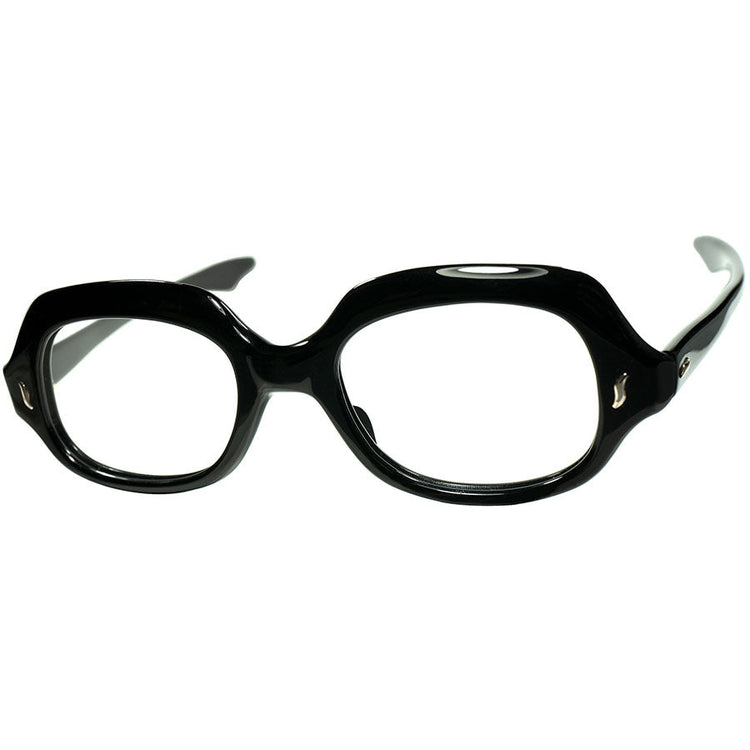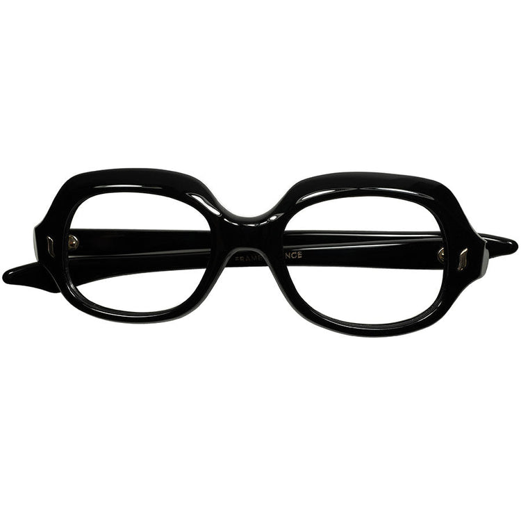アイウェアデザインの無限大の可能性が最初に示された時代の好例1960s デッド FRAME FRANCE ジオメトリック ウェリントン BLACK 44/22実寸 ビンテージ ヴィンテージ 眼鏡 メガネ 【a8332】