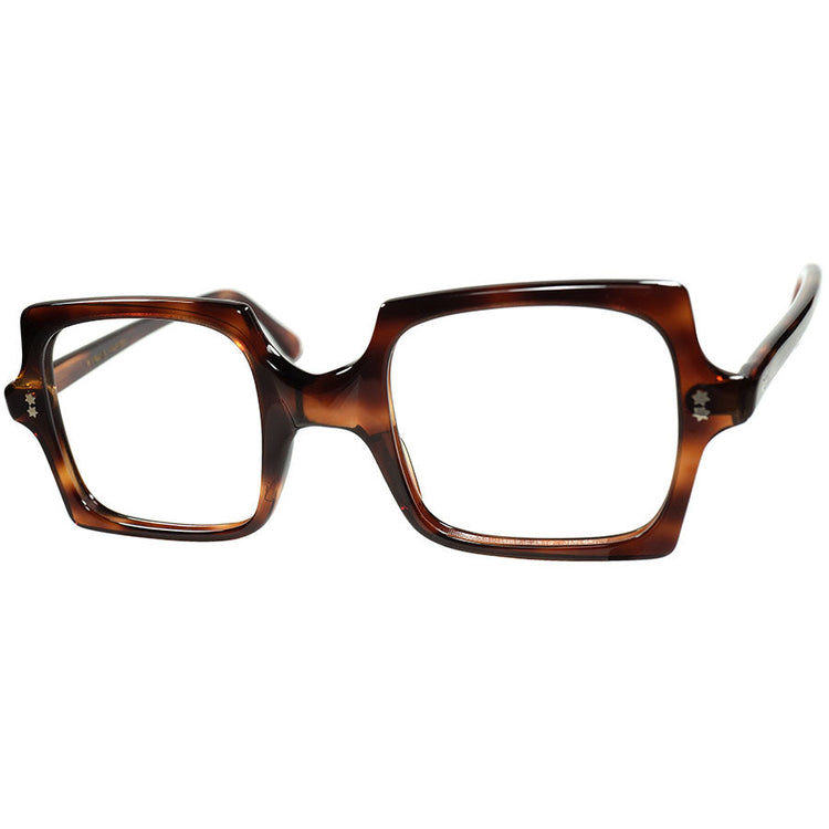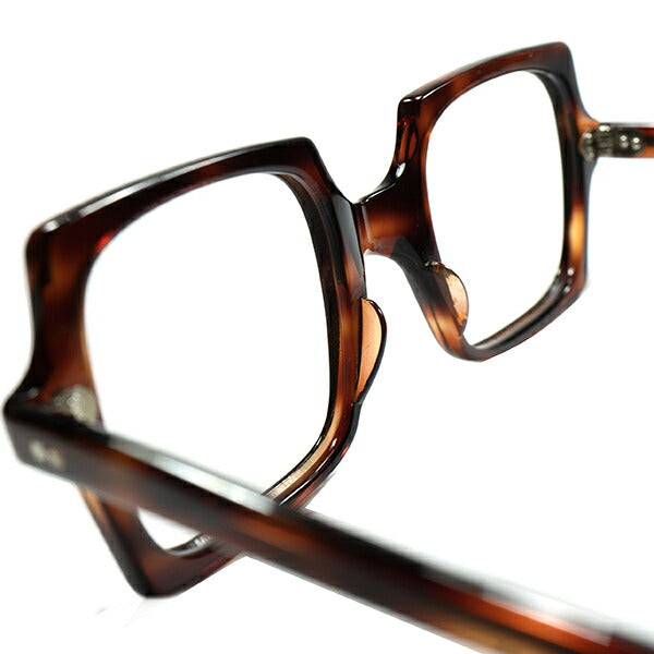 ノーマークな秘境ジャンルからの超高評価な一本1960sフランス製デッドストック FRAME FRANCE 六角星RIVET スクエア 正方形 AMBER size46/24 ビンテージ ヴィンテージ 眼鏡 メガネ 【a8337】