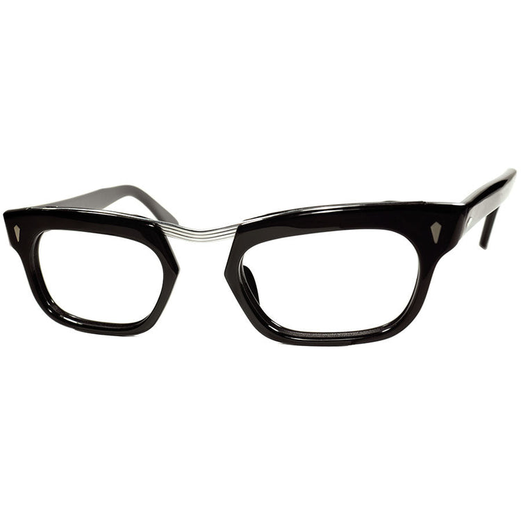 待望BLACKx SILVERにエグい逆ダイヤヒンジの激レアAMOR STYLE 1950s-60s デッドストック FRAME FRANCE アモールスタイル ウェリントン黒 size48/22 ビンテージ ヴィンテージ 眼鏡 メガネ 【a8341】