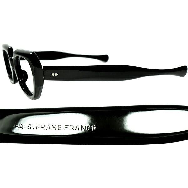 肉厚なBLACKのフロントや、六角星ヒンジのストレートテンプルテンプルもこの時代のFRAME FRANCEらしさを漂わせており、より古い時代のFRAME FRANCEでは決して味わうことのできないシャープでモダンなテイストが、