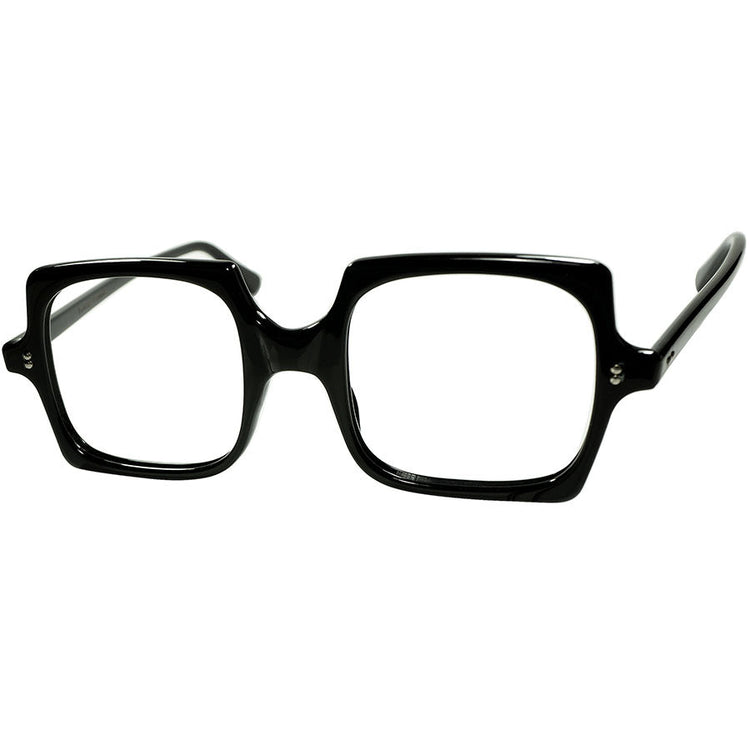 ミッドセンチュリー期を象徴する産物の一つである当時の幾何学型のアイウェアの好例ともいえる正方形型のスクエアBLACKが 最高ランクのデッドストックで入荷しました。