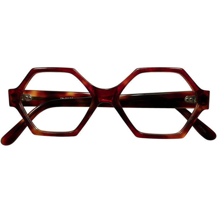 濃厚でリッチなテイストの赤黒いデミアンバー生地とカクカクした六角形のヘキサゴンシェイプが見事な調和に仕上がったフレンチヘキサゴンがまっさらなデッドストックで入荷しました。