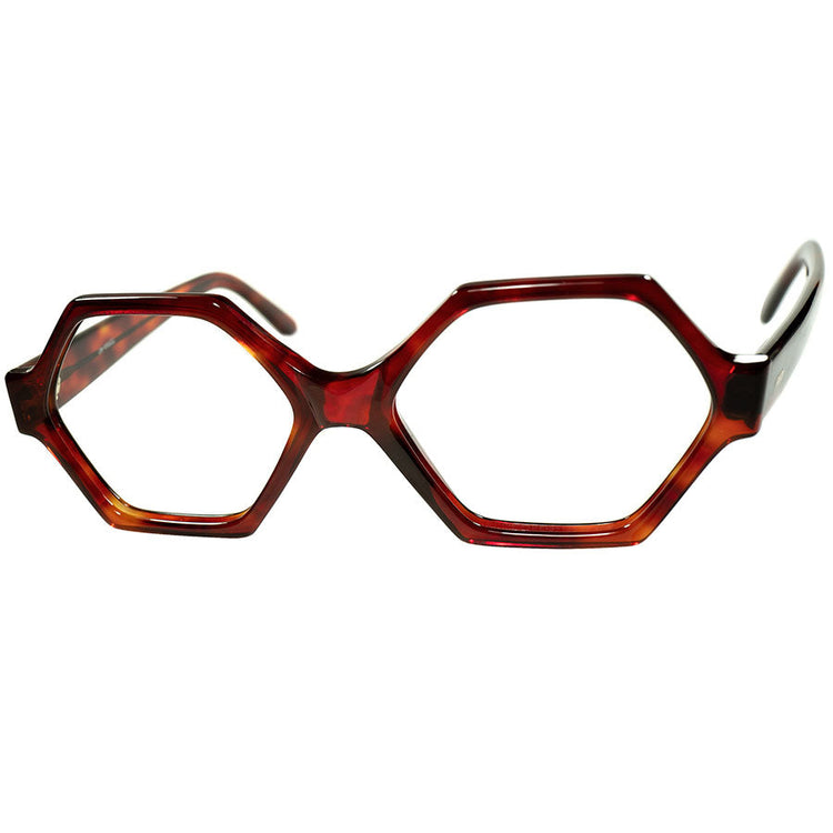 リッチで濃厚な生地感と近未来な幾何学デザインの見事な融合1960sフランス製デッドストック FRAME FRANCE ヘキサゴン 六角形 50/20実寸 RICH AMBER ビンテージ ヴィンテージ 眼鏡 メガネ 【a8351】