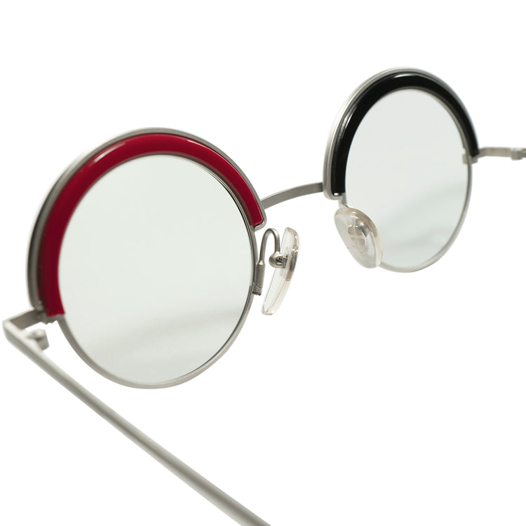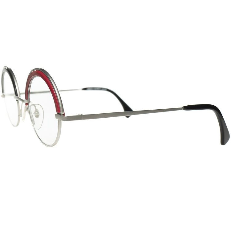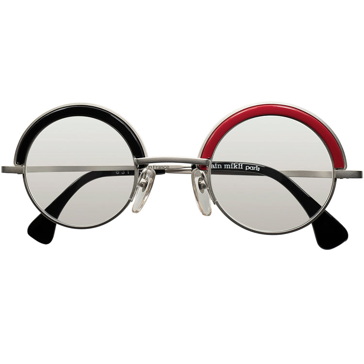 ミクリ氏の狂気が最高に光る赤のワンポイント左右非対称1980s 初期フランス製 本人期 デッドストック ALAIN MIKLI アランミクリ ROUND ブロー丸眼鏡 ビンテージ ヴィンテージ 眼鏡 メガネ 【a8405】