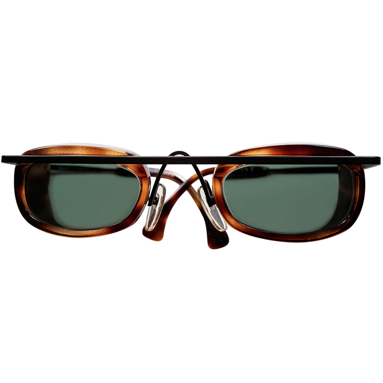 CAZALやISSEY MIYAKEのアイウェアでも見かけるような曲智仕様のメタルバーにレンズ枠をぶら下げるような構造の独特のデザインの走りともいえる存在で、