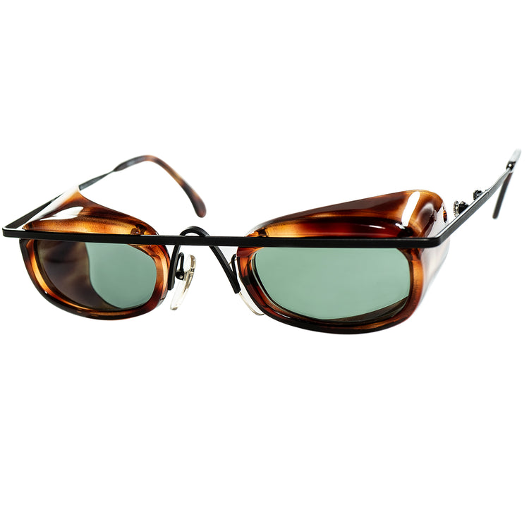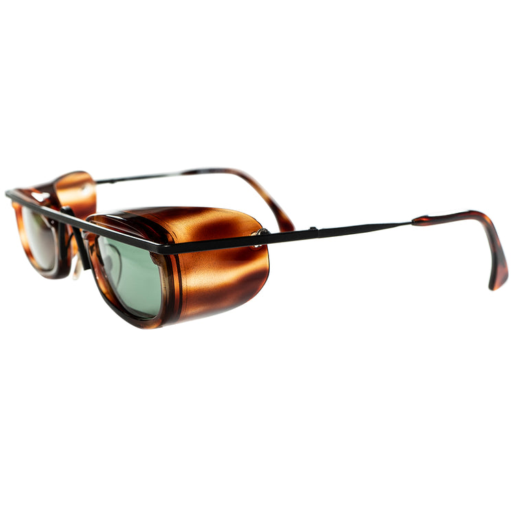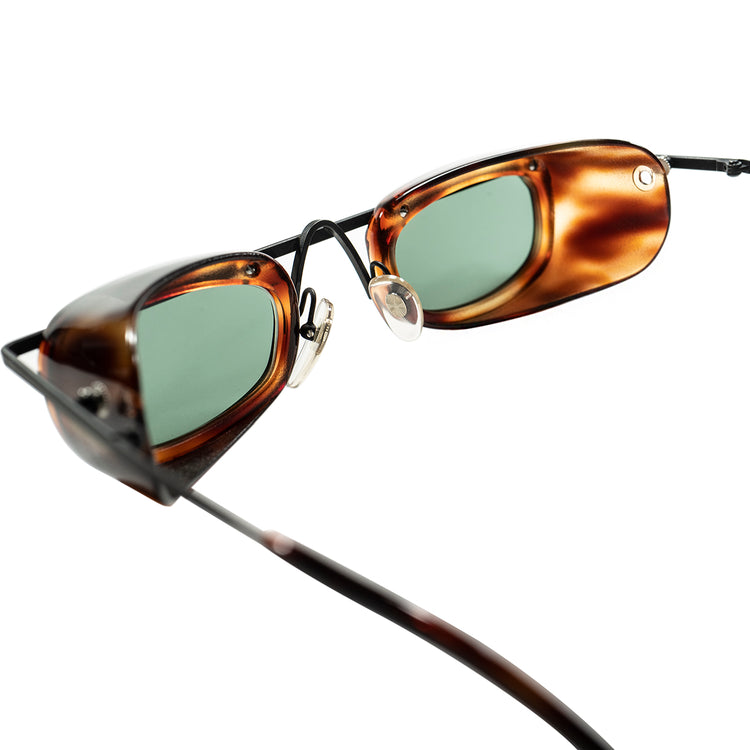 元来、工業用のインダストリアルアイウェアのデザインとして誕生したサイドガードを、