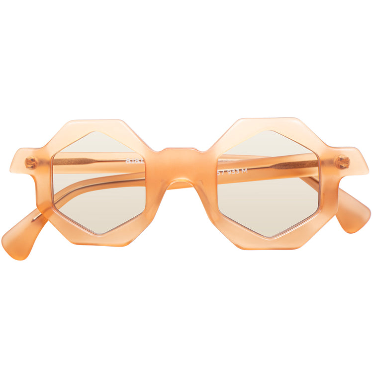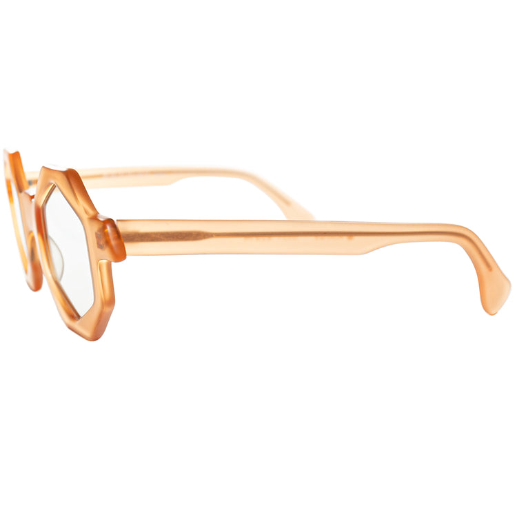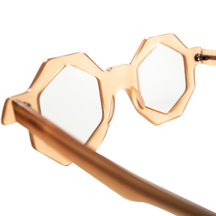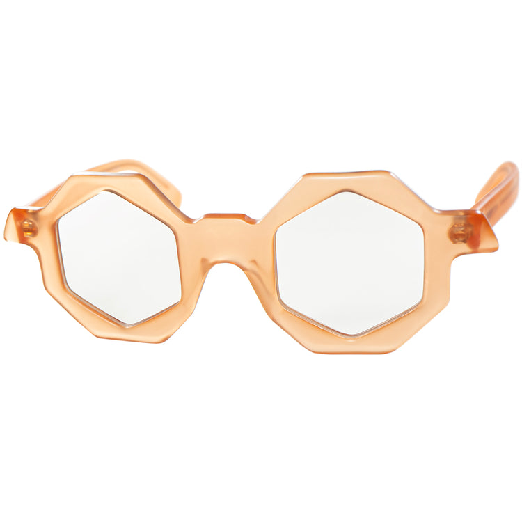 そこに六角形のレンズシェイプをくり抜いてしまったという、奇才であるミクリ氏でしか着想できない大胆かつユニークな アバンギャルドデザインを見事に体現しており、