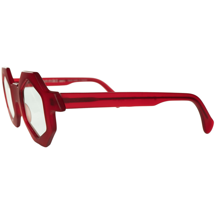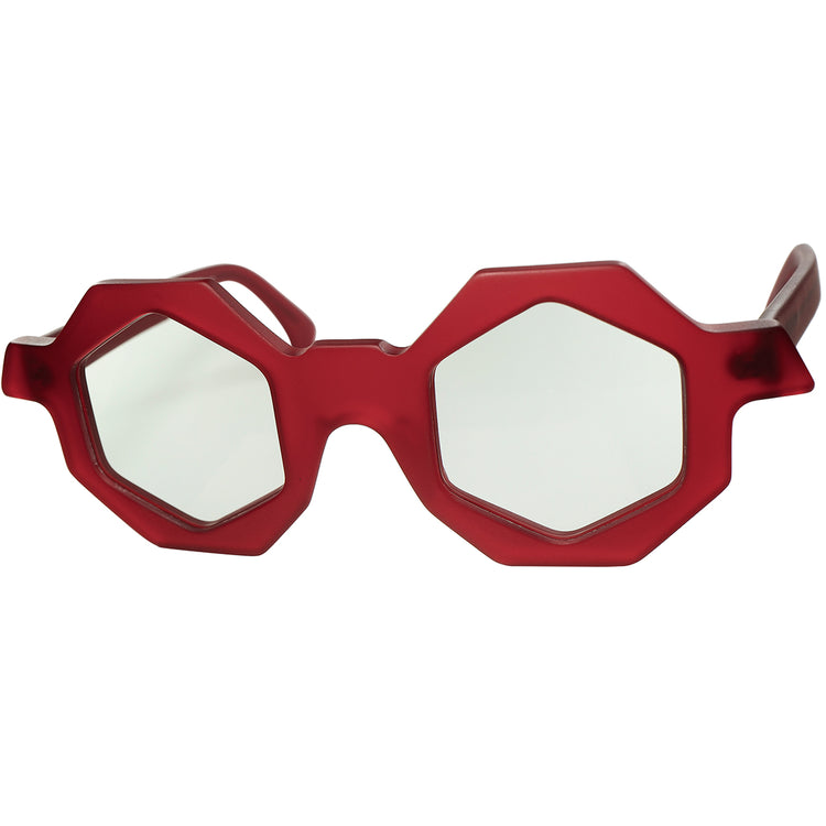 そこに六角形のレンズシェイプをくり抜いてしまったという、奇才であるミクリ氏でしか着想できない大胆かつユニークな アバンギャルドデザインを見事に体現しており、