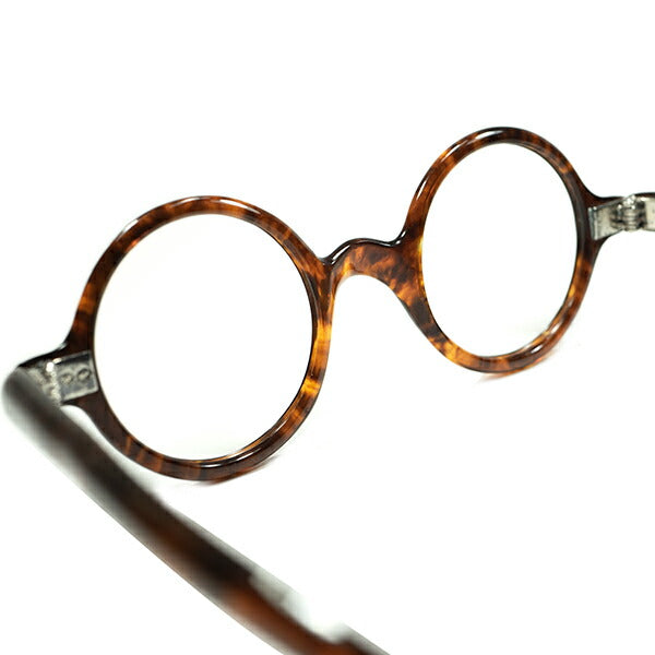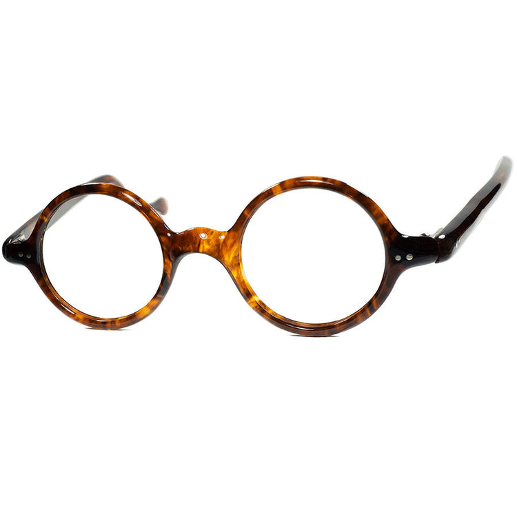 UNIQUE ART DECO デザイン1920s-30s MADE IN USA デッドストック 7枚蝶番 LONG-TEMPLE セルロイド 丸眼鏡 38/20実寸 狭目PD&小顔向けSMALL SIZE ビンテージ ヴィンテージ 眼鏡 メガネ 【a8806】