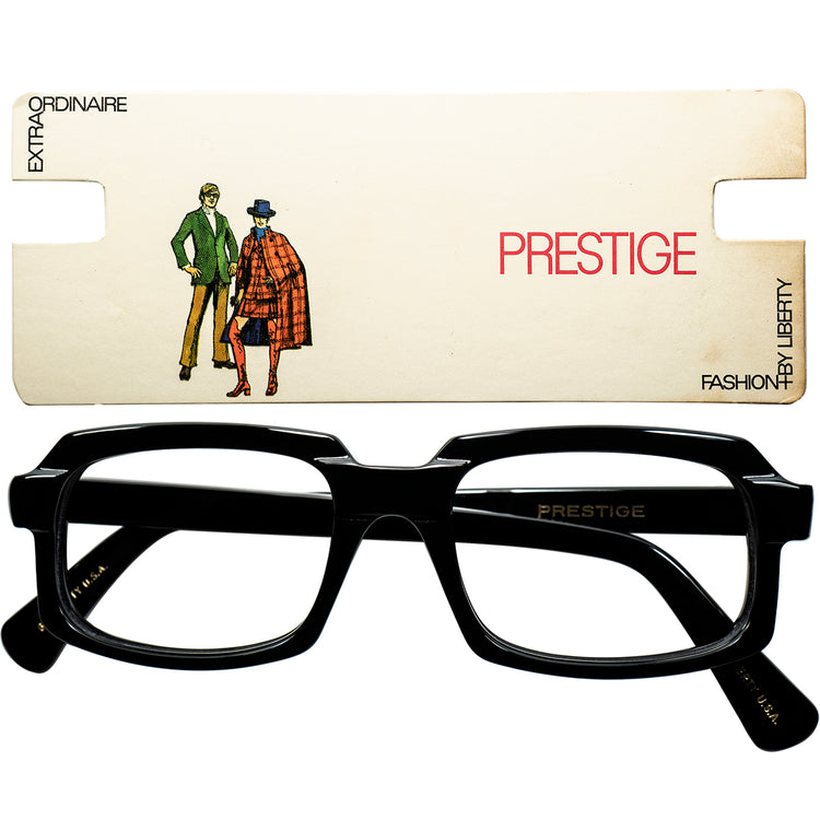 幅広FACEなサイズ難民必見の秀逸モデル 1960s 極上デッドストック USA製 LIBERTY プレステージ 最大7mm極厚BLACK スクエア ウェリントン size52/19 ビンテージ ヴィンテージ 眼鏡 メガネ 【a8822】
