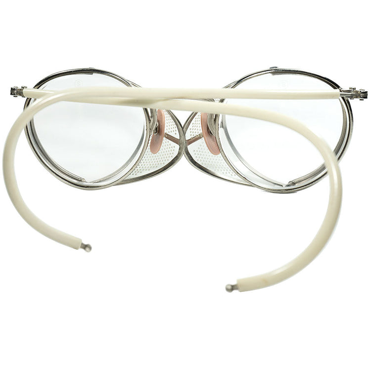 現代で改めてみてみるとアバンギャルドな感覚で、スチームパンクな世界観が凝縮された独特のインダストリアルデザインが、 到底実用ありきのファッションとは無縁のものとは想像もつかないハイレベルなアイウェアデザインを体現した、