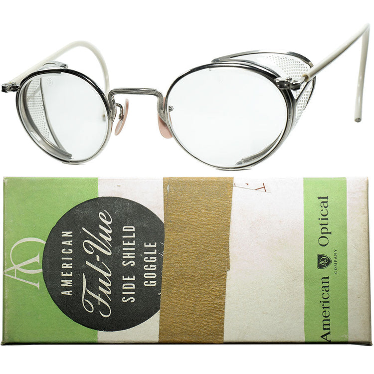 広めPD向け貴重SIZE1930-40s USA製 BOX付 デッドストック AO アメリカンオプティカル AMERICAN OPTICAL 最初期型 INDUSTRIAL FUL-VUE フルビュー ラウンド size47/25 ビンテージ ヴィンテージ 眼鏡 メガネ 【a8843】