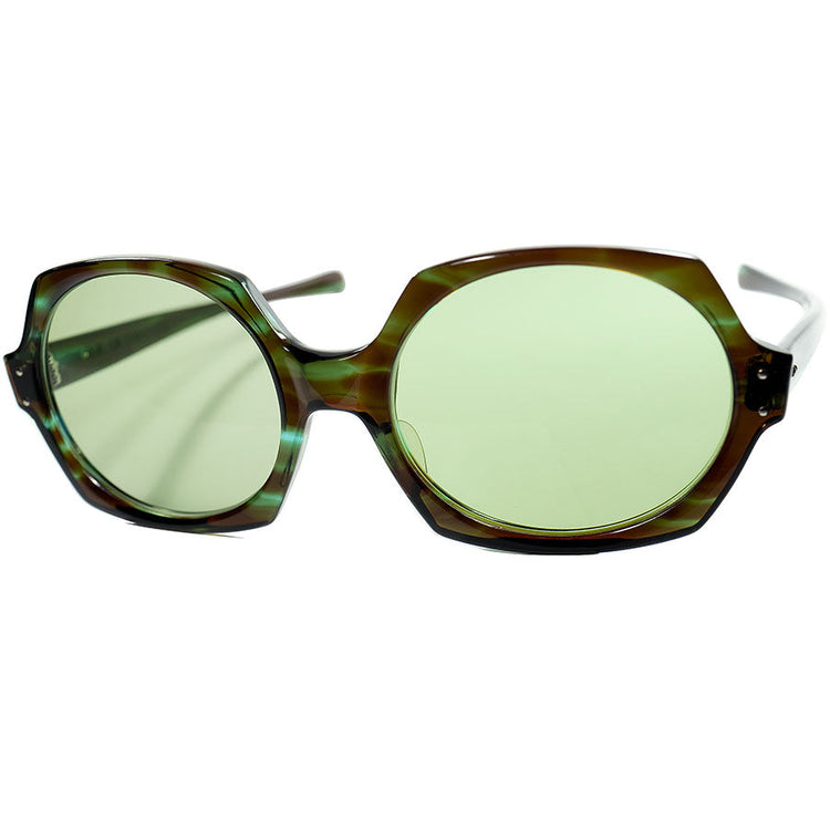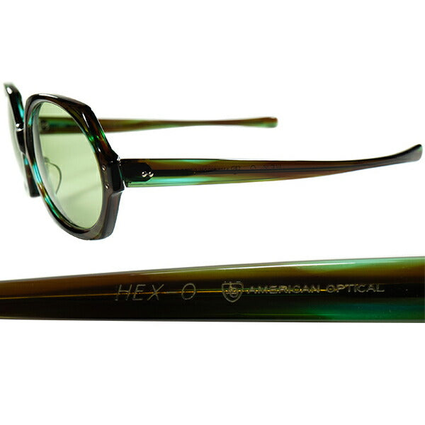 OLDサイケデリックTASTE体現1960s-70sUSA製デッドストック AMERICAN OPTICAL アメリカンオプティカル AO HEXAGON 六角形 サングラス ALL GREEN仕様 ビンテージ ヴィンテージ 眼鏡 メガネ 【a8849】