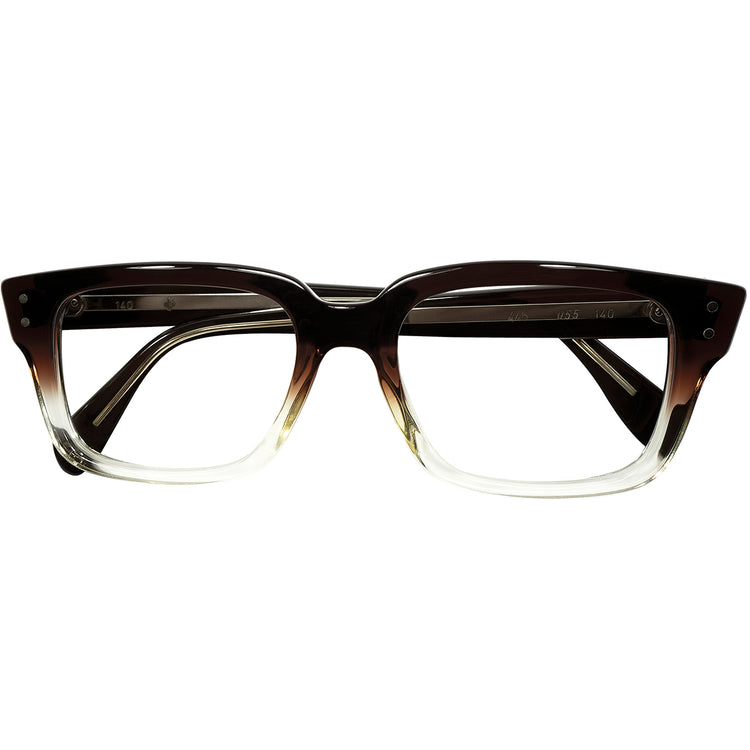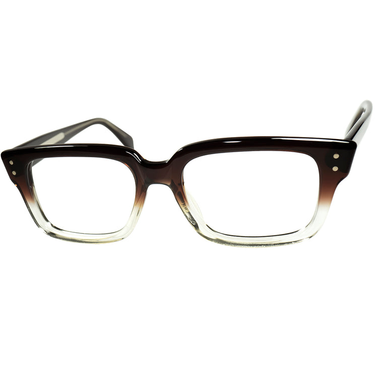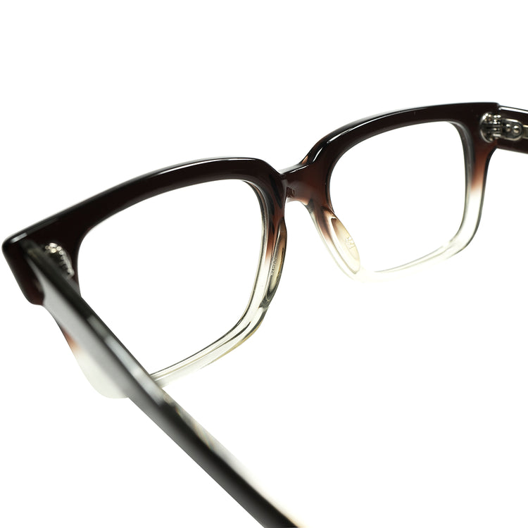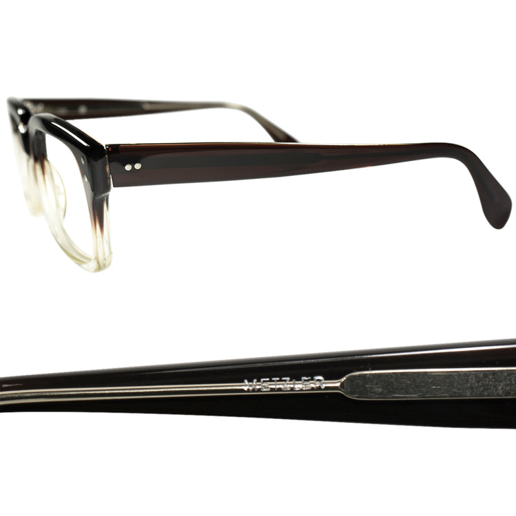 1970年代から1980年代のJAPAN VINTAGEのアイウェアでよく見かけるレトロ感漂うビール瓶色からクリアにフェードする渋い配色のウェリントン型フレームですが、