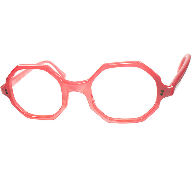 只者ではないオーラ漂う鮮烈なCARZYルック1960s デッドストック FRAME FRANCE 八角形 六角星鋲 フレンチ オクタゴン PINK PEARL size46/24 ビンテージ ヴィンテージ 眼鏡 メガネ 【a8912】