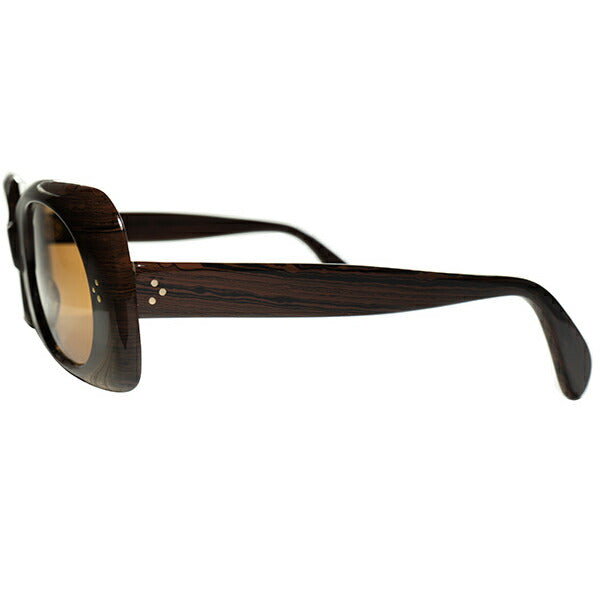 またレンズにはよくある安価なノンコートのカラーレンズではなく、フレームのハイクオリティな生地感や作り込みの高さに見劣りをしないようにと、古い時代のヴィンテージレンズのような質感で、