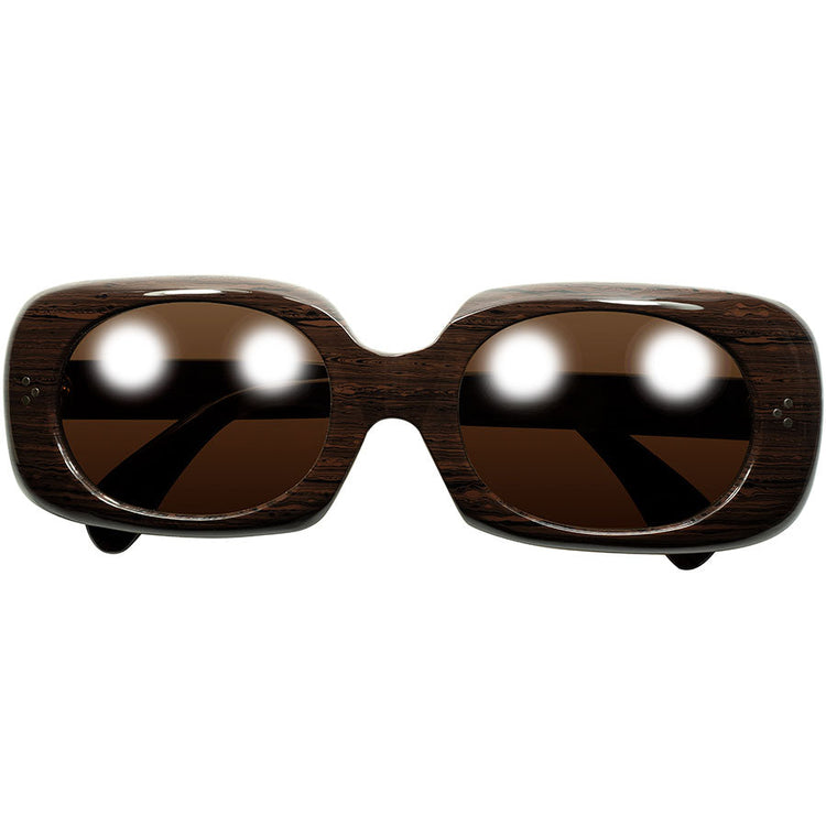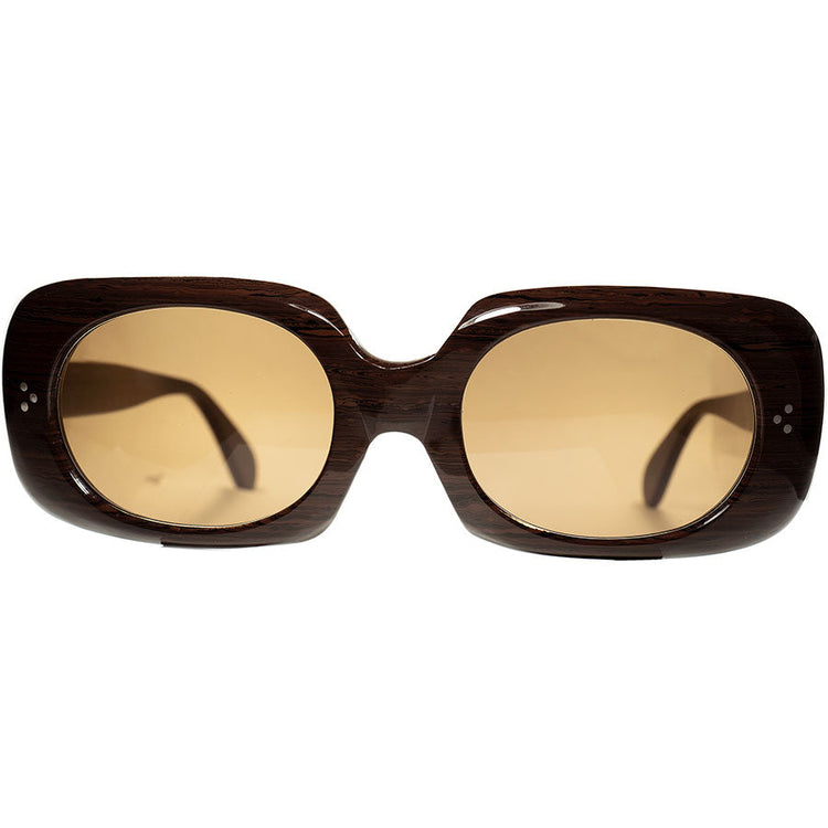 非常に珍しいデザインの3DOT オールBROWN仕立て1960s イタリア製 デッドストック FRAME ITALY 3ドットSQUARE ウェリントン サングラス BROWN WOOD ビンテージ ヴィンテージ 眼鏡 メガネ 【a8979】