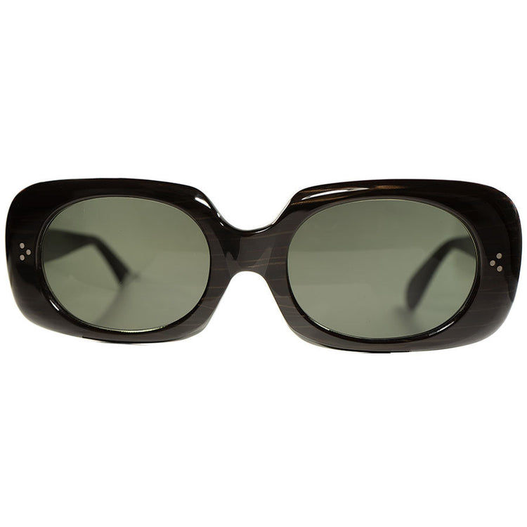 オーガニック仕立ての珍しい3DOTフレーム1960sイタリア製 デッドストック FRAME ITALY 3ドット SQUARE ウェリントン サングラス DARK BROWN WOOD ビンテージ ヴィンテージ 眼鏡 メガネ 【a9053】