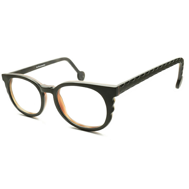 他にはないオリジナリティを出したl.a.Eyeworksらしいユニークなデザインになり、一見単色のMATT BLACKカラーと思わせておきながら、