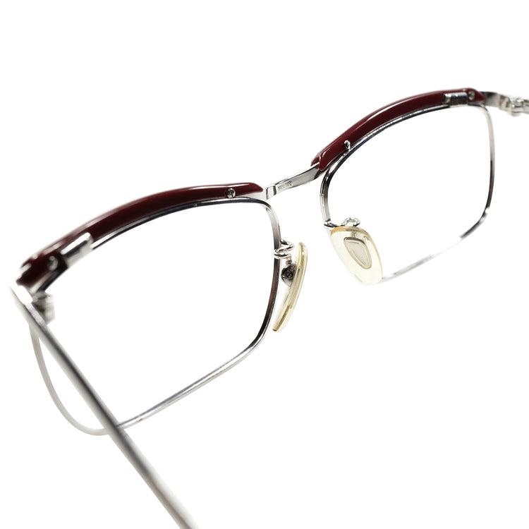 透明ではないソリッドなボルドー色のセル生地とホワイトゴールド金張という、個人的にもほとんど他で見たことのない