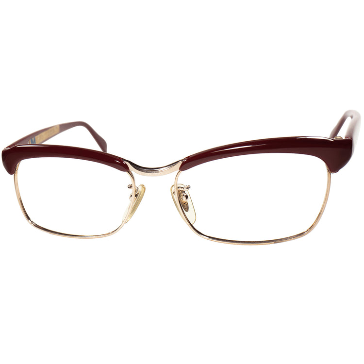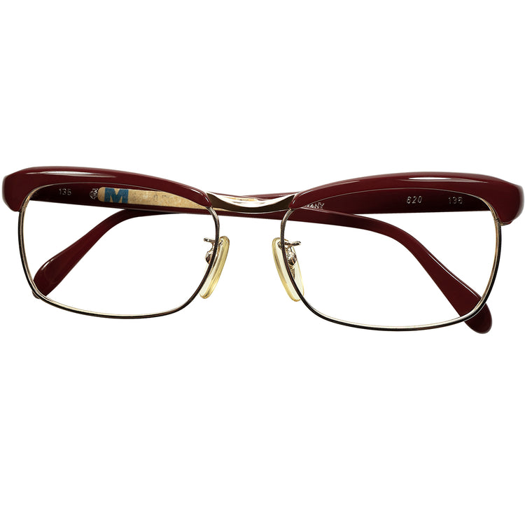 赤ワイン色とゴールドのELEGANTな色使い1960-70s デッドストック 西ドイツ製オリジナル METZLER メッツラー 1/20 10K金張 ブロータイプ size52/16 ビンテージ ヴィンテージ 眼鏡 メガネ 【a9238】
