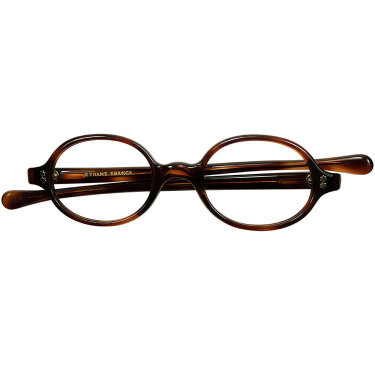 SIMPLE&BASICなCLASSIC DESIGN 絶妙コンパクト個体1960s フランス製 デッドストック FRAME FRANCE 六角星ヒンジ OVALラウンド 丸眼鏡 size44/20 ビンテージ ヴィンテージ 眼鏡 メガネ【a9247】