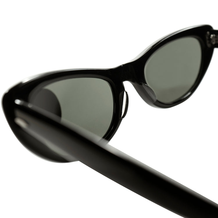 縦幅が短くほんのり心地よい角度で緩やかに吊り上がったエッジを効かせたウェリントンシェイプが当時のサングラスでも