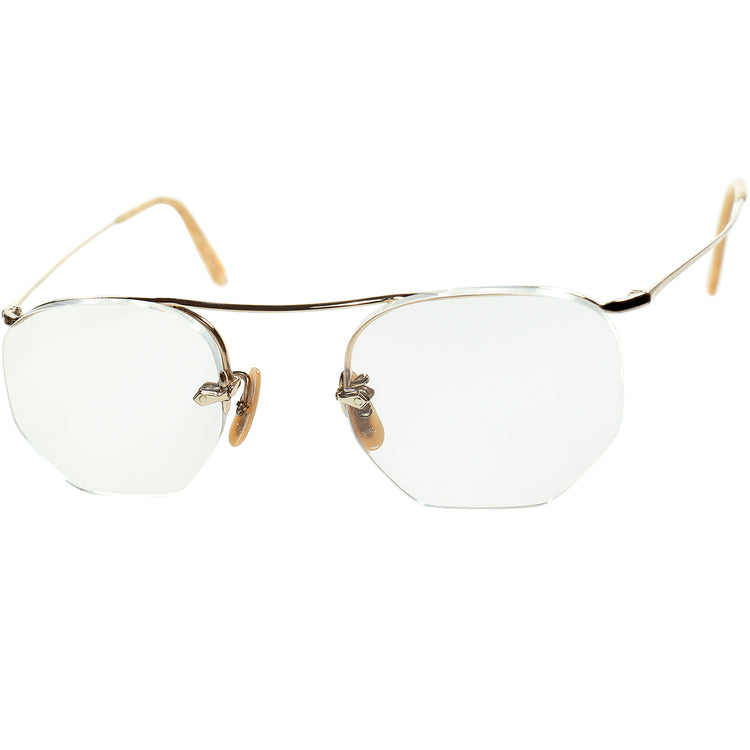 鼻眼鏡派生の激渋EARLY CLASSIC DESIGN1930s デッドストック USA製 B&L ボシュロム NUMONT FUL-VUE アッパーブリッジ 1/10 12K金張 無彫金 size42/20  ビンテージ ヴィンテージ 眼鏡 メガネ【a9401】