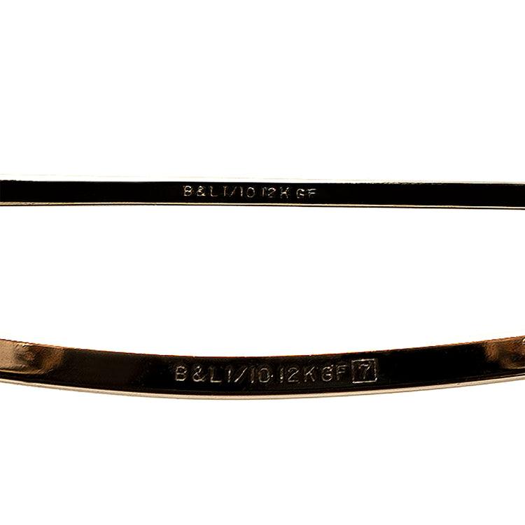 ブリッジ裏、右眉厚み下、左右テンプル内側、左右ノーズパッド内側、とネジ以外のフレームパーツにしっかりとB&L刻印の入る、