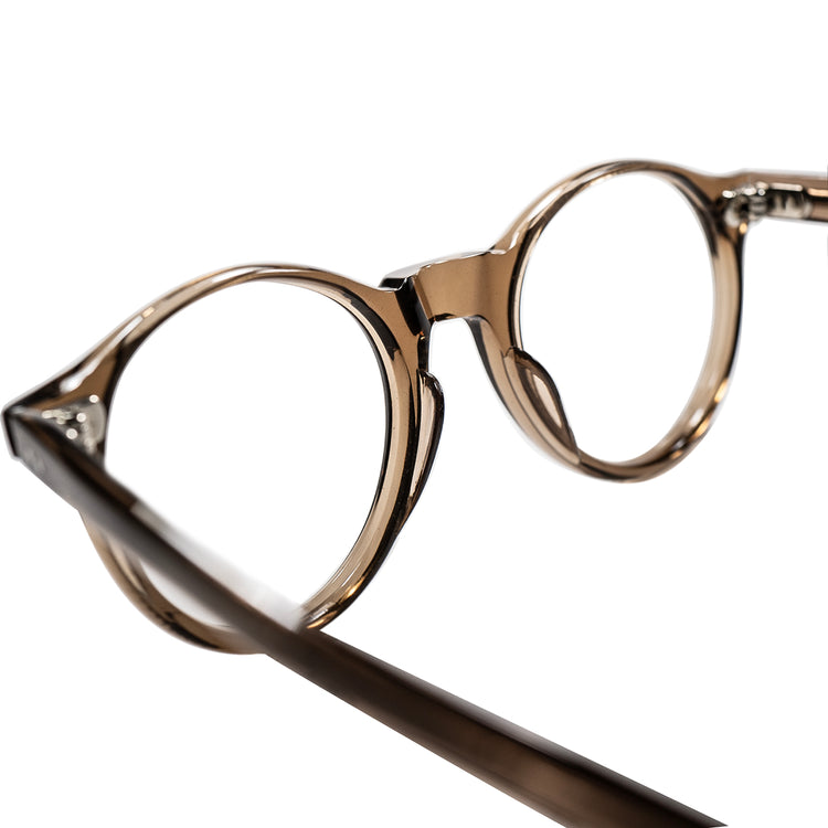 そこに絶妙なスモーキーなトーンのクリアブラウンのWHISKY生地が採用されることでスッと表情に違和感なく溶け込むような、MAXレベルの汎用性高さに仕上がっております。