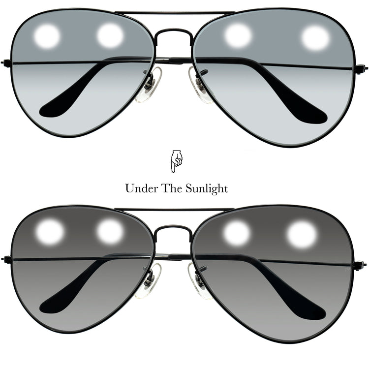 ほんのりグレーがかったくすんだ渋めなブルートーンにグラデーションの調光ガラスレンズという、