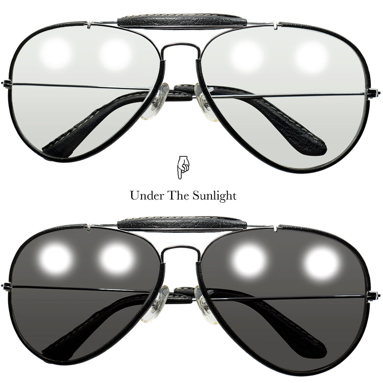 ※調光レンズの色変化を真夏の快晴時の昼過ぎ頃に検証したところ、通常時(室内)濃度15%(おおよそ)くらいから濃度60-65%(おおよそ)くらいまで変化しました。(冬場の晴れた日はもう少し変化するかもしれません。)