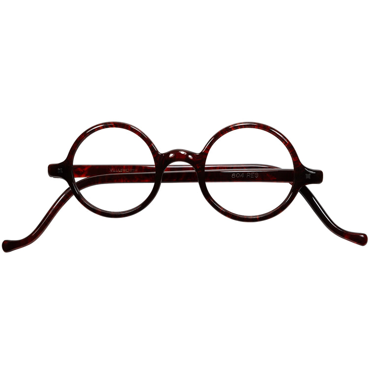 USヴィンテージでは最初期の頃のセルフレームともいえる時代である1920年代から1930年代頃のものと推測される頃のもので、一山式のサドルブリッジにまん丸のラウンド型のレンズ枠や、