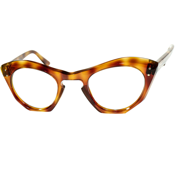 多面的で複雑な美しすぎるCUTTINGと絶妙SHAPE1950s オリジナル フランス製 デッドストック FRAME FRANCE キーホール FOX PANTO 実寸42/25 GOODSIZE  ビンテージ ヴィンテージ 眼鏡 メガネ 【a9816】