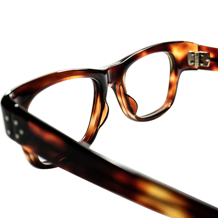 弊社取扱いのほぼ全てのフレームは厳正な基準での判別に合格し、3回以上の検品、専門の眼鏡士による高度なメンテナンスと調整等、 ある程度時間を要し全ての工程を出来る限り徹底して行っておりますので、安心してご使用いただける高水準クオリティのヴィンテージ眼鏡をご堪能いただけます。