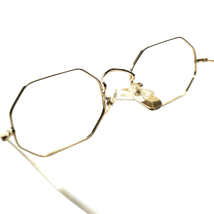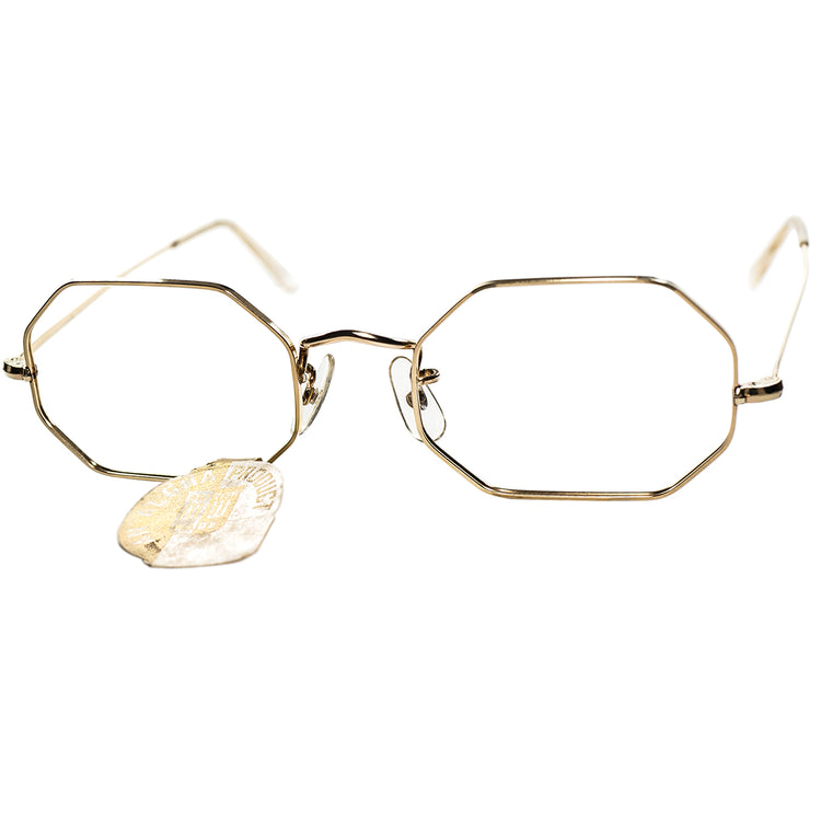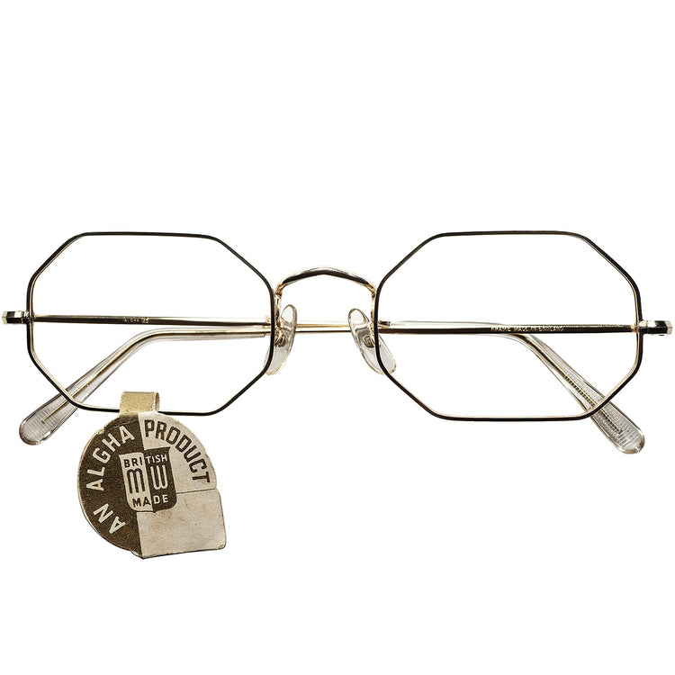 現在デッドでは絶滅してしまった超レアモデル 1960s MADE IN ENGLAND デッドストック ALGHA オクタゴン OCTAGON 初期(20)刻印の角リム金張 size50/20 ビンテージ ヴィンテージ 眼鏡 メガネ 【b0002】
