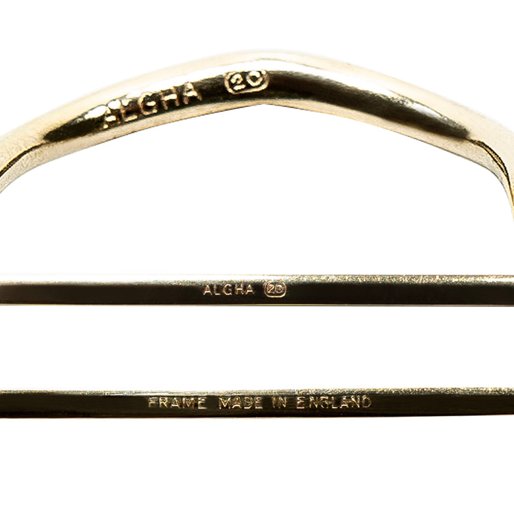 こちらのモデルは以前取り扱っていたヨーロッパ規格もしくは、12KT GF刻印の頃のものでは48などレンズサイズが奇数数字の展開だったのですが、こちらは北米流通の個体もしくはALGHA 20刻印の最初期のためかタグ裏には49/20と記載されておりますが、