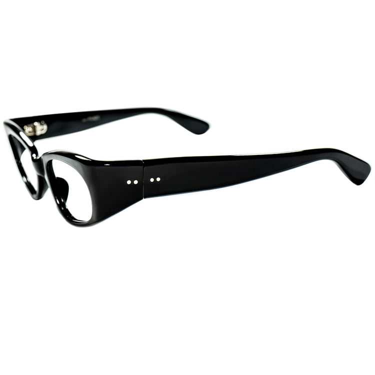 眉に綺麗に沿うような程よい角度に釣り上がったFOX系ウェリントンのフロントシェイプを立体曲智仕様ににすることで、