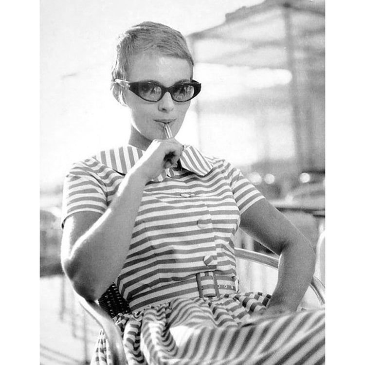 ゴダール監督の代表映画「勝手にしやがれ」(1959)で主演女優のJean Sebergが映画の劇中で愛用していたものと同型シェイプ(ヒンジデザインは異なる)が最高にCOOLでエレガントな、
