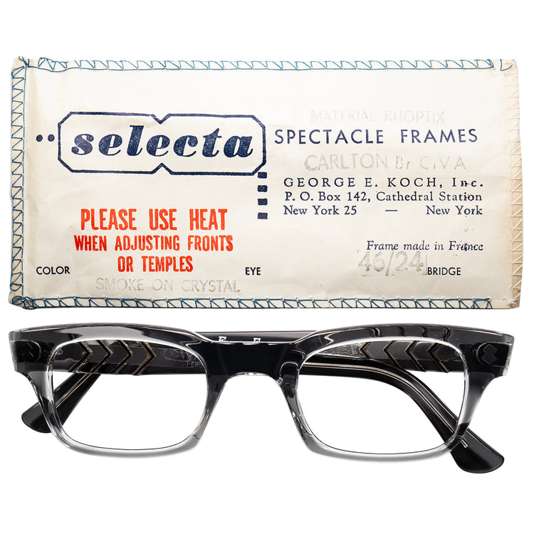 探すと案外ない優秀トータルバランスのVINTAGE 1960sフランス製 デッドストック FRAME FRANCE フレーム フランス by Selecta Wダイヤ鋲 正統派ウェリントン GRAY SMOKE size46/24 ビンテージ ヴィンテージ 眼鏡 メガネ 【b0275】